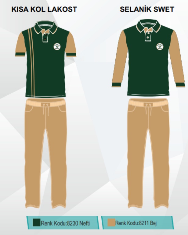 03.02.2025 tarihinde gerçekleştirilen Öğretmenler Kurulu ve Okul Aile Birliği Yönetim Kurulu toplantılarında alınan karar doğrultusunda okul kıyafeti aşağıdaki şekilde belirlenmiştir: